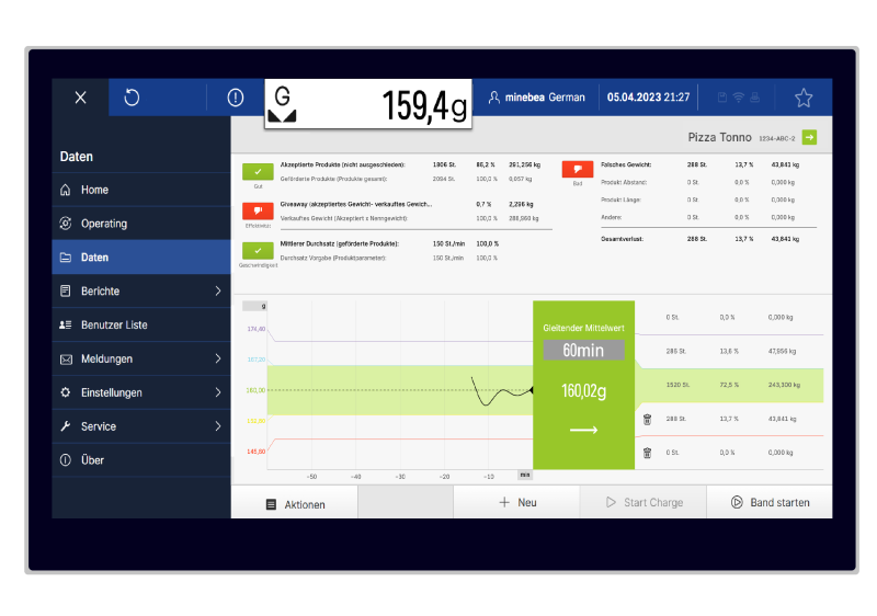 You can use the new user interface to easily configure, control, test and audit your checkweighers.