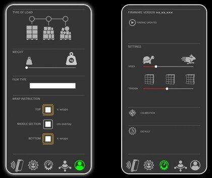 Operators can adjust personal settings via the app. In this way the app helps to wrap the pallet correctly for safe transport, based on the weight and load configuration of your pallets.
